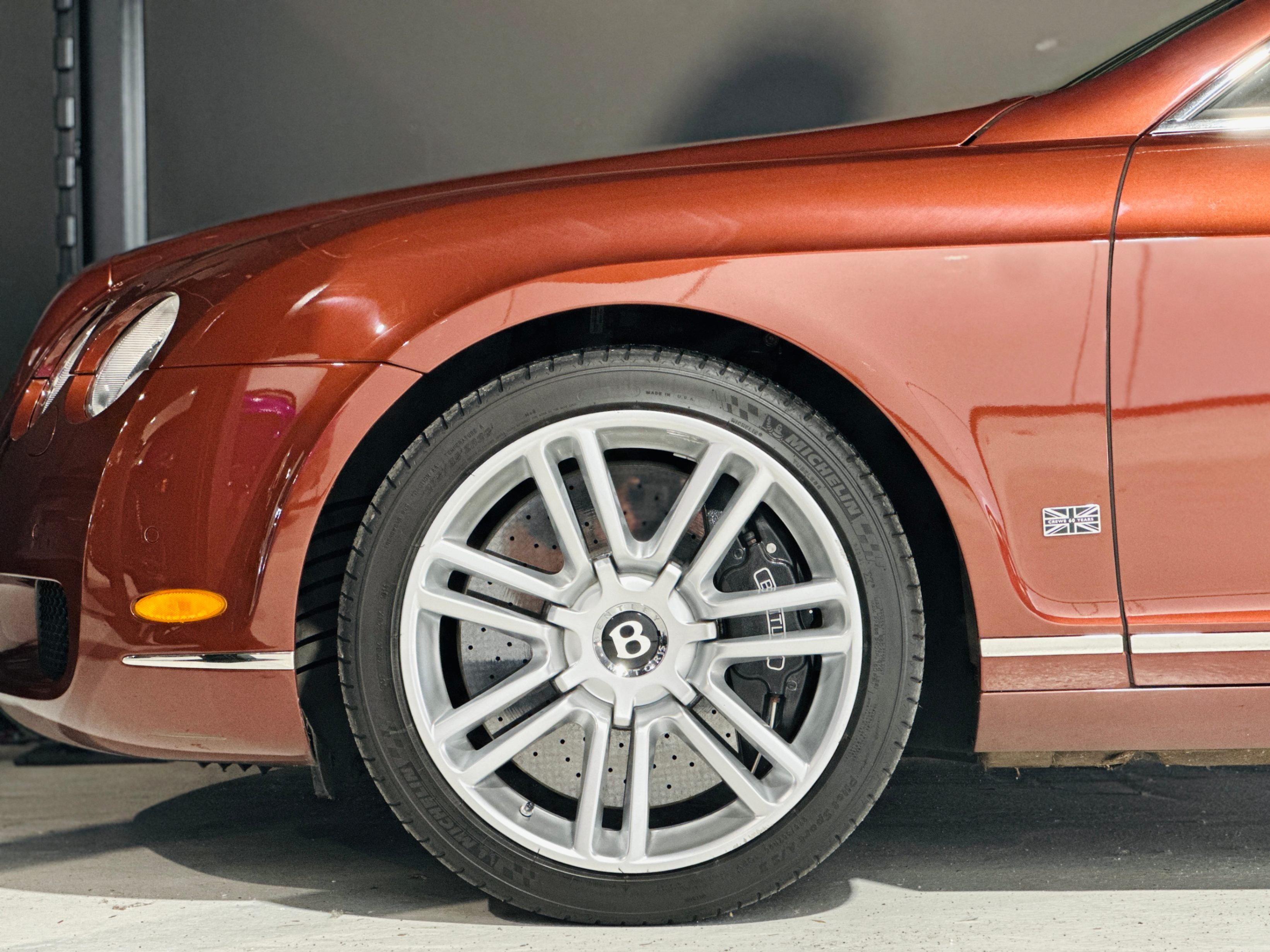The Continental GT Diamond Series is a limited (400 units worldwide) version of the 2007 model year Continental GT Mulliner Driving Specification, commemorating the Crewe factory's 60th anniversary. It includes carbon-silicon carbide brakes (420x40mm cross-drilled front and 356x28mm rear), exclusive 9Jx20-inch 14-spoke alloy wheels, choice of 3 additional exclusive body colours (Moroccan Blue (bright blue), Anthracite (grey black) and Meteor (steel blue grey)), unique insignia to exterior, unique treadplates with the text 'Celebrating 60 years of manufacturing in Crewe', choice of upgraded veneers (Dark Stained Burr Walnut or Piano Black (additional veneers available at extra cost)), drilled alloy sport foot pedals, gear lever finished in knurled chrome and hide, diamond quilted hide to seat facings, door and rear quarter panels; embroidered Bentley emblem to seat facings, indented hide headlining and a Mulliner alloy fuel filler cap.