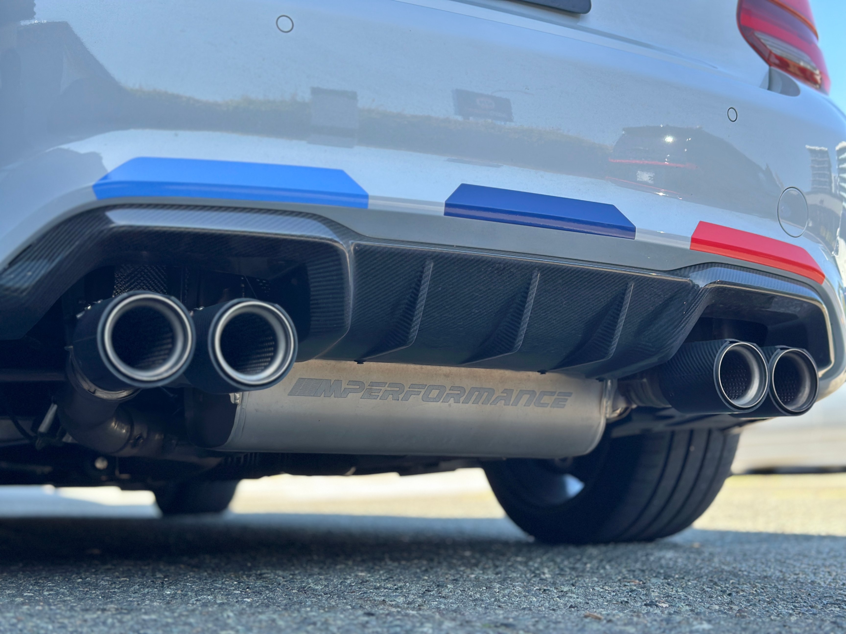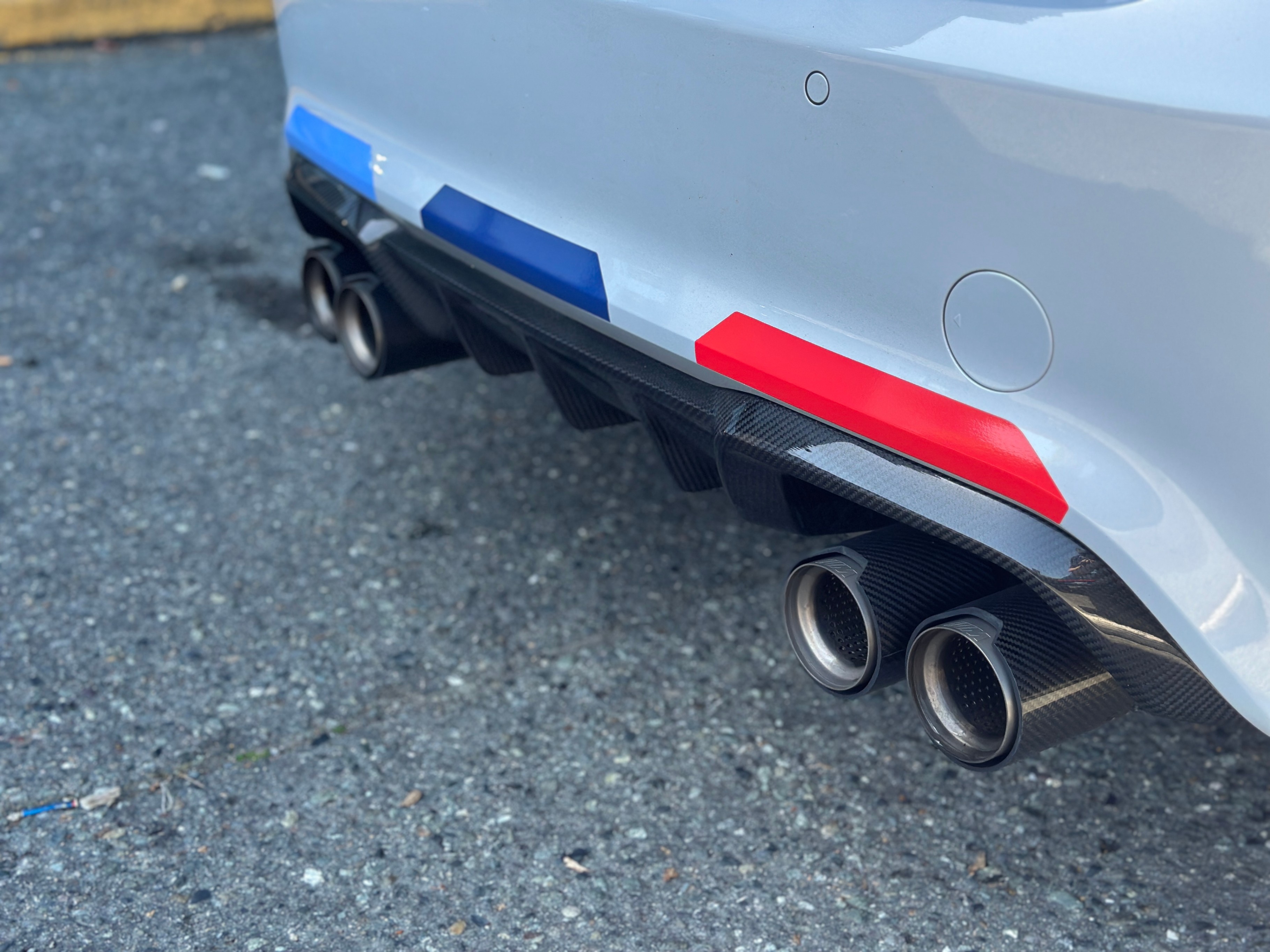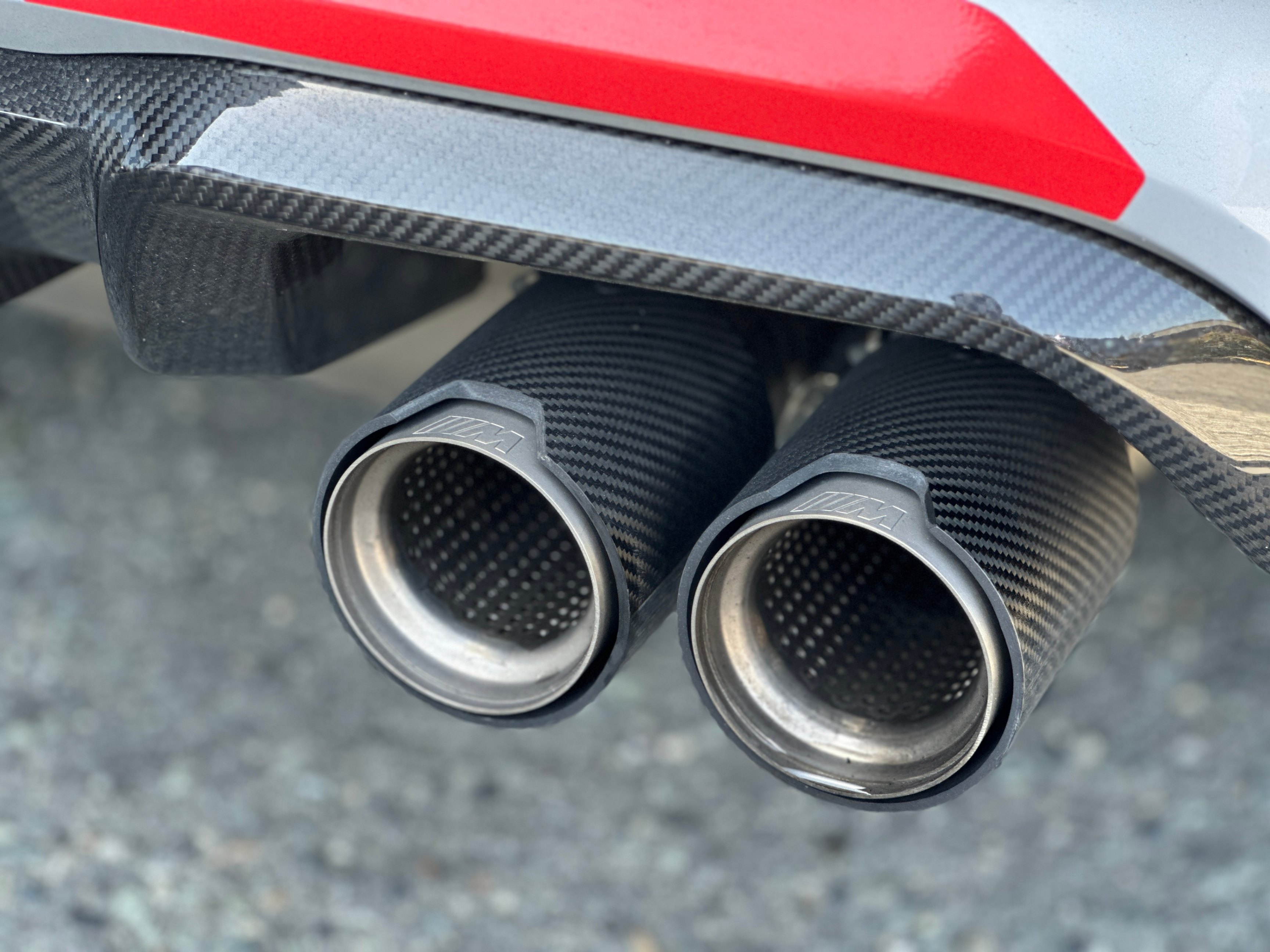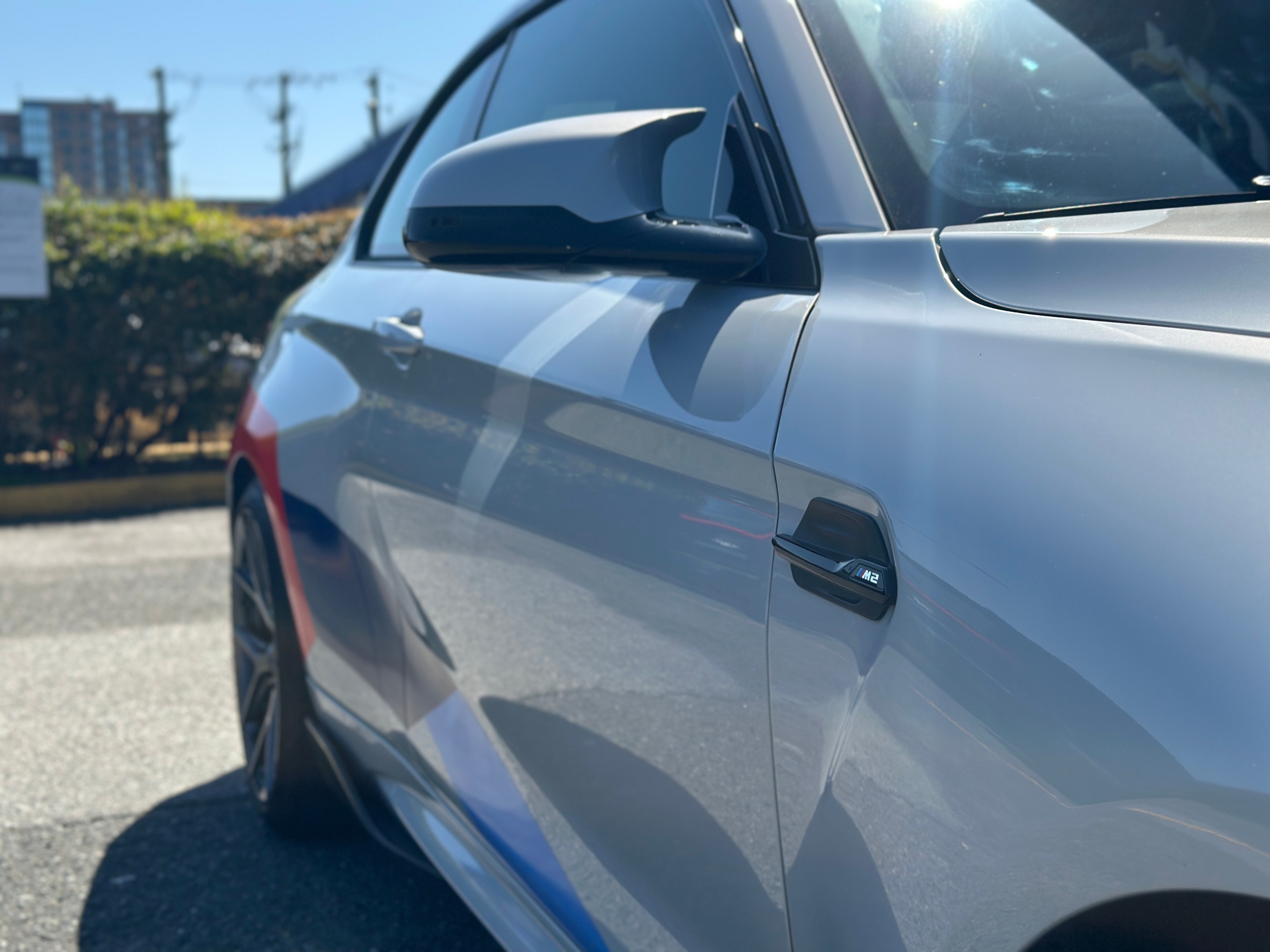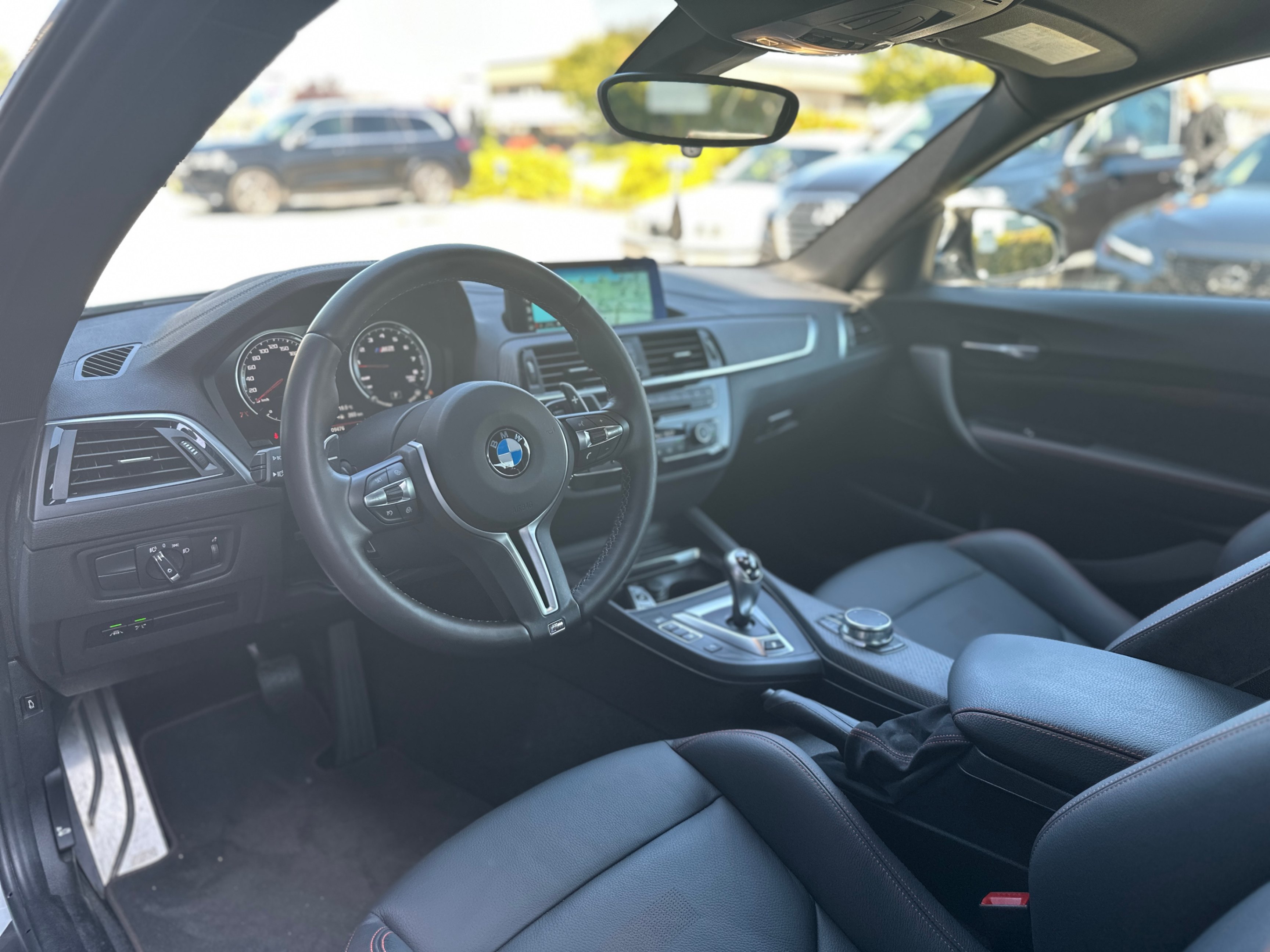 Our 2021 BMW M2 Competition is equipped with upgraded Vossen Hybrid Forged wheels, M-Performance factory titanium exhaust system, and carbon fiber aero kits; factory rims are included.