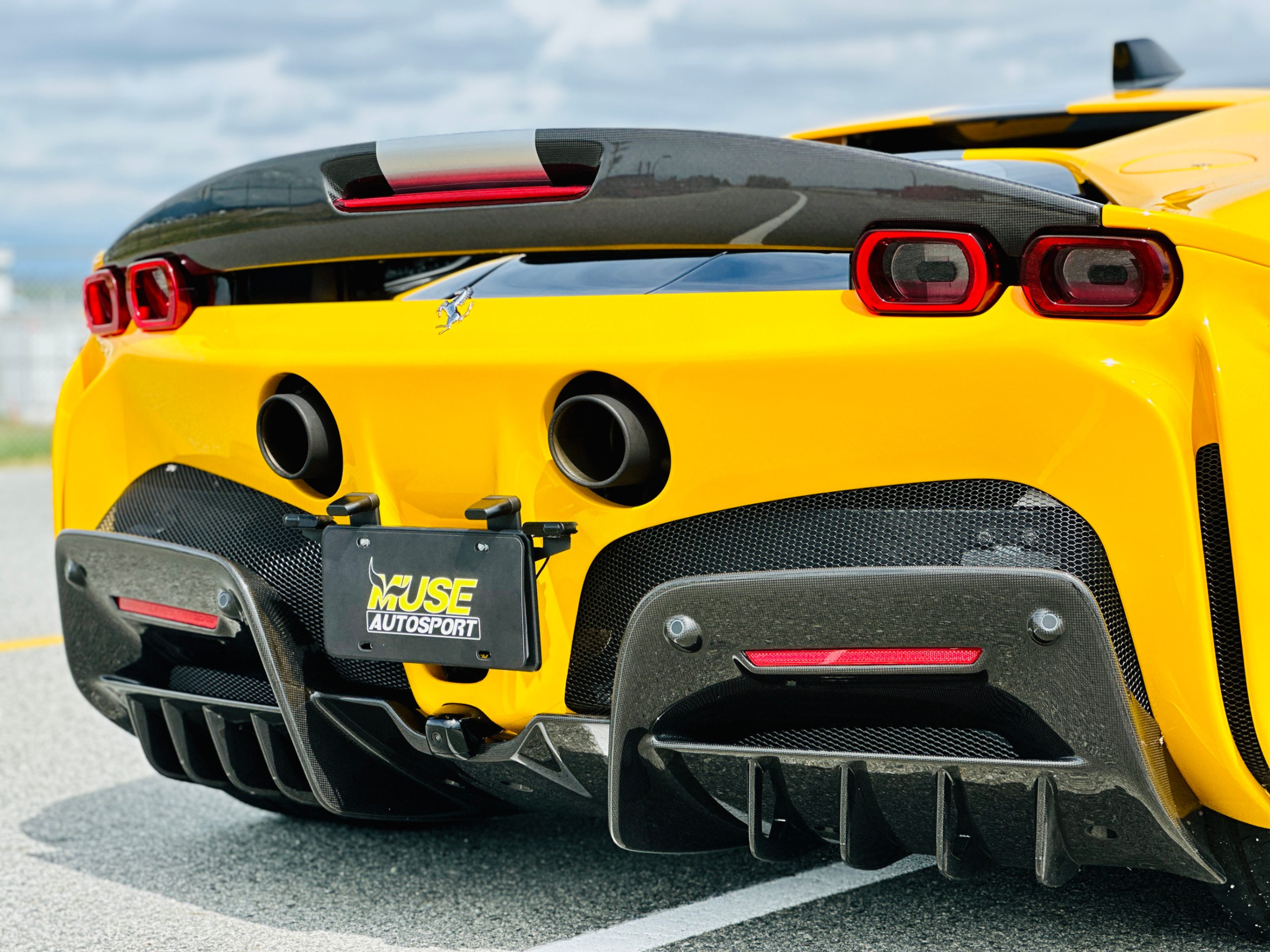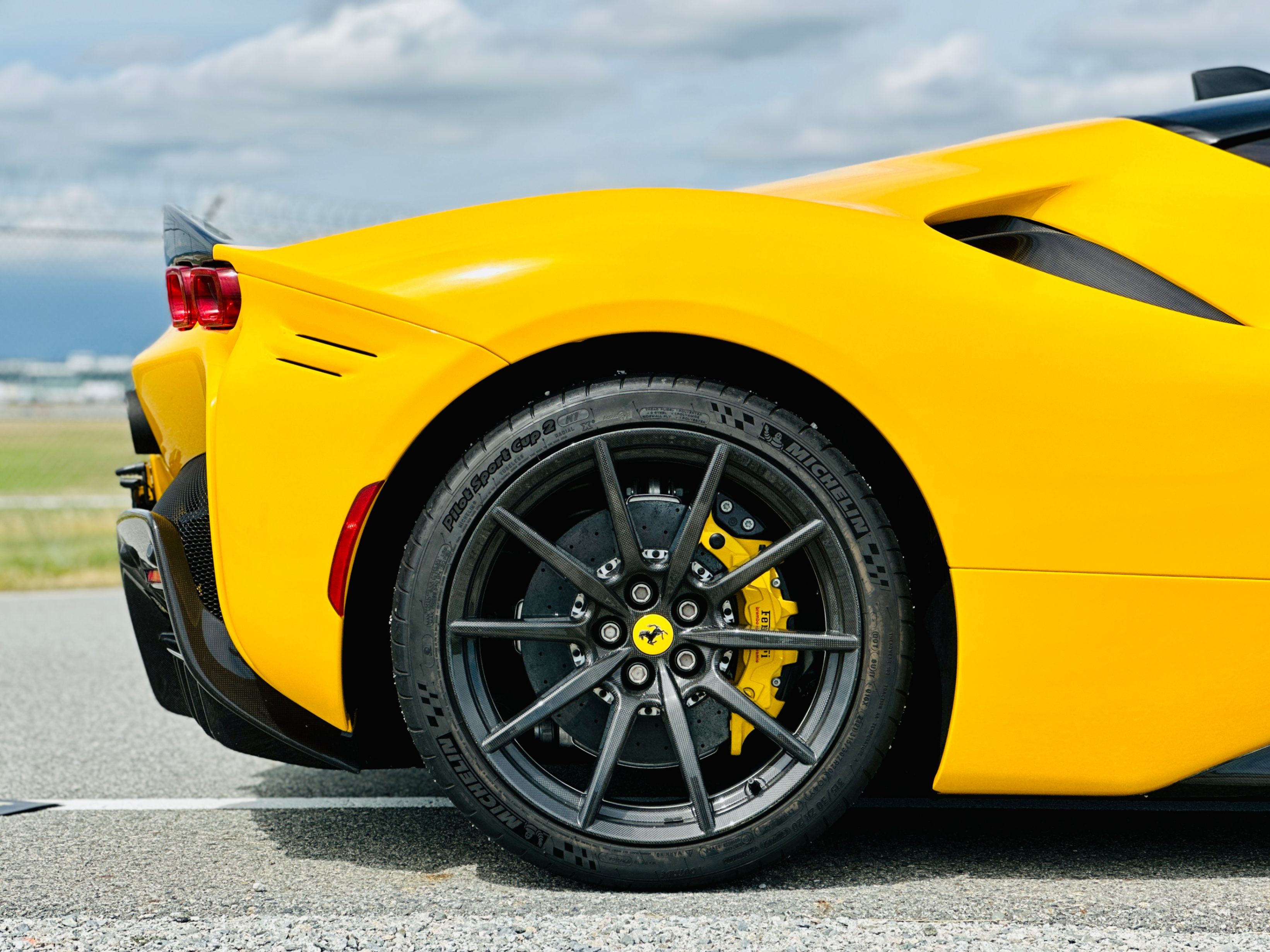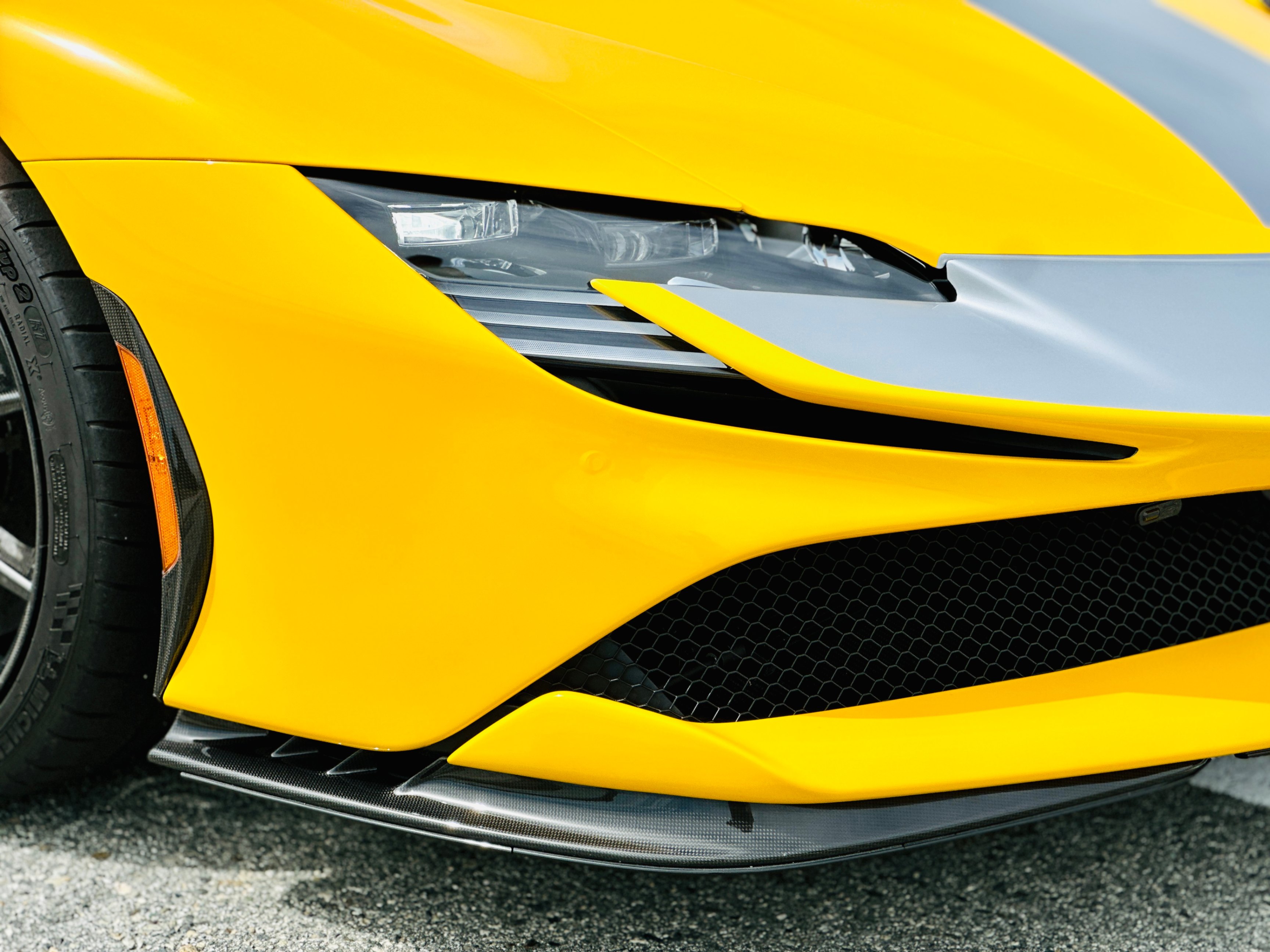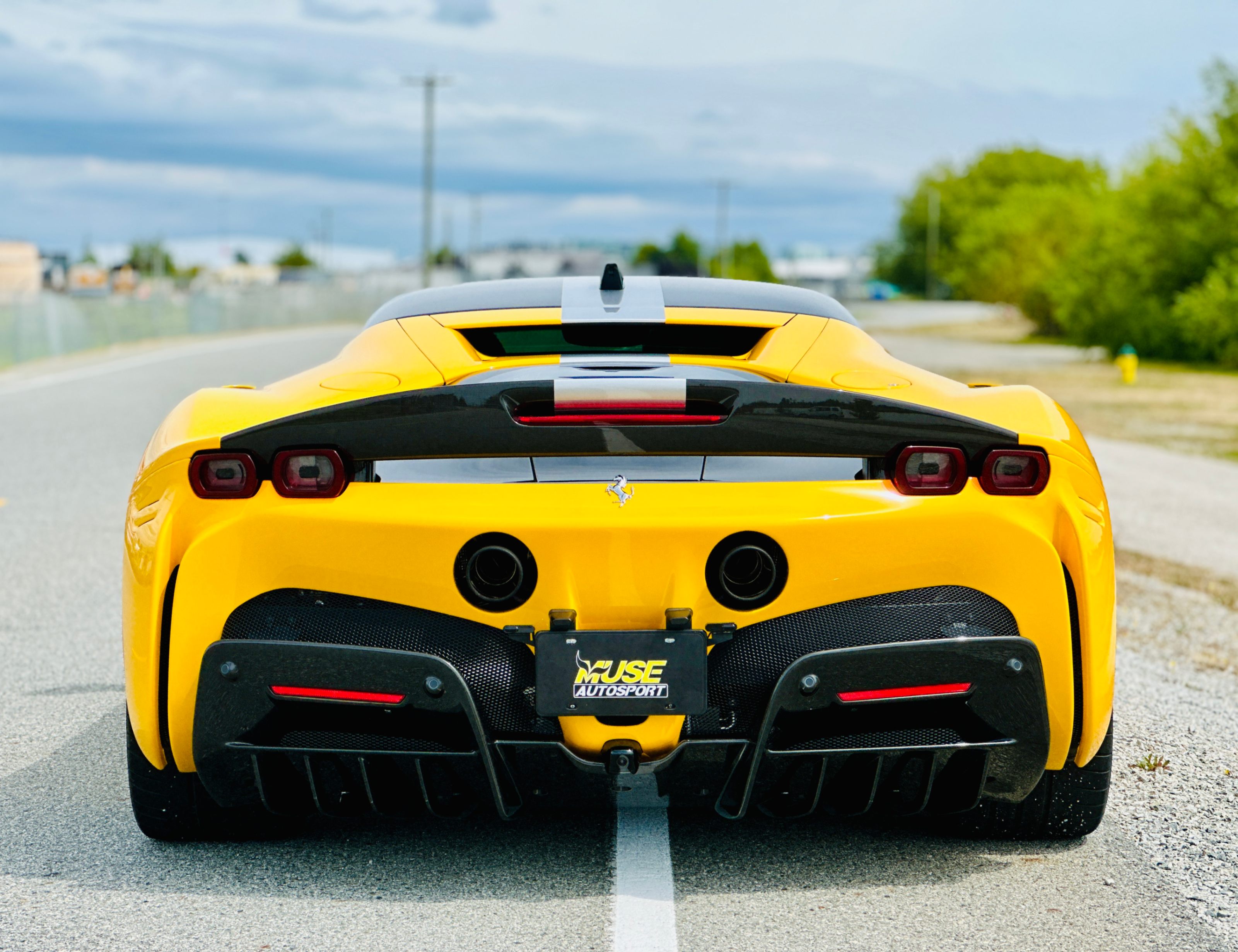 With the SF90, power comes from a massive V-8 and three electric motors. The 4.0-litre twin-turbocharged V-8 generates a mighty 769 horsepower on its own, and the trio of electric motors provide an additional 217 horsepower. In the end, the gas/electric powertrain generates a net output of 986 horsepower and 590 lb-ft of torque. Power is sent to all four wheels, making this the first mid-engined Ferrari with all-wheel drive. An eight-speed automatic transmission oversees the proceedings. As you’d expect, all that power under the hood translates into blistering acceleration. Ferrari estimates that this car will do 0-60 in low two seconds. It has multiple different driving modes which allow you to tailor the car’s handling to suit your preferences. The lineup includes EV Only, Hybrid, Performance, and Qualify, which absolutely unleashes the beast.