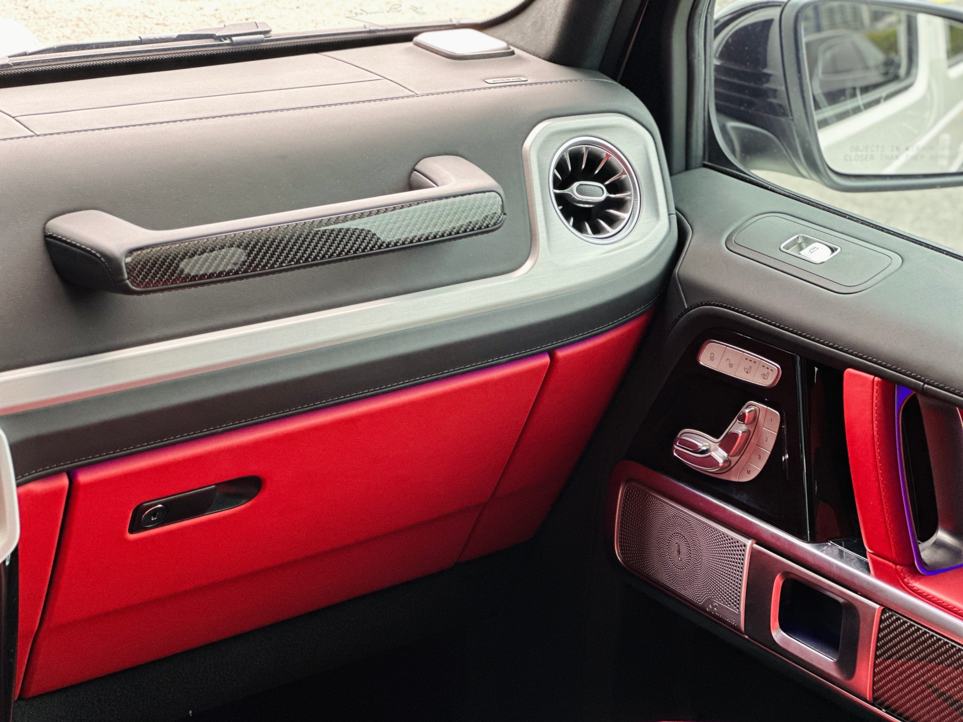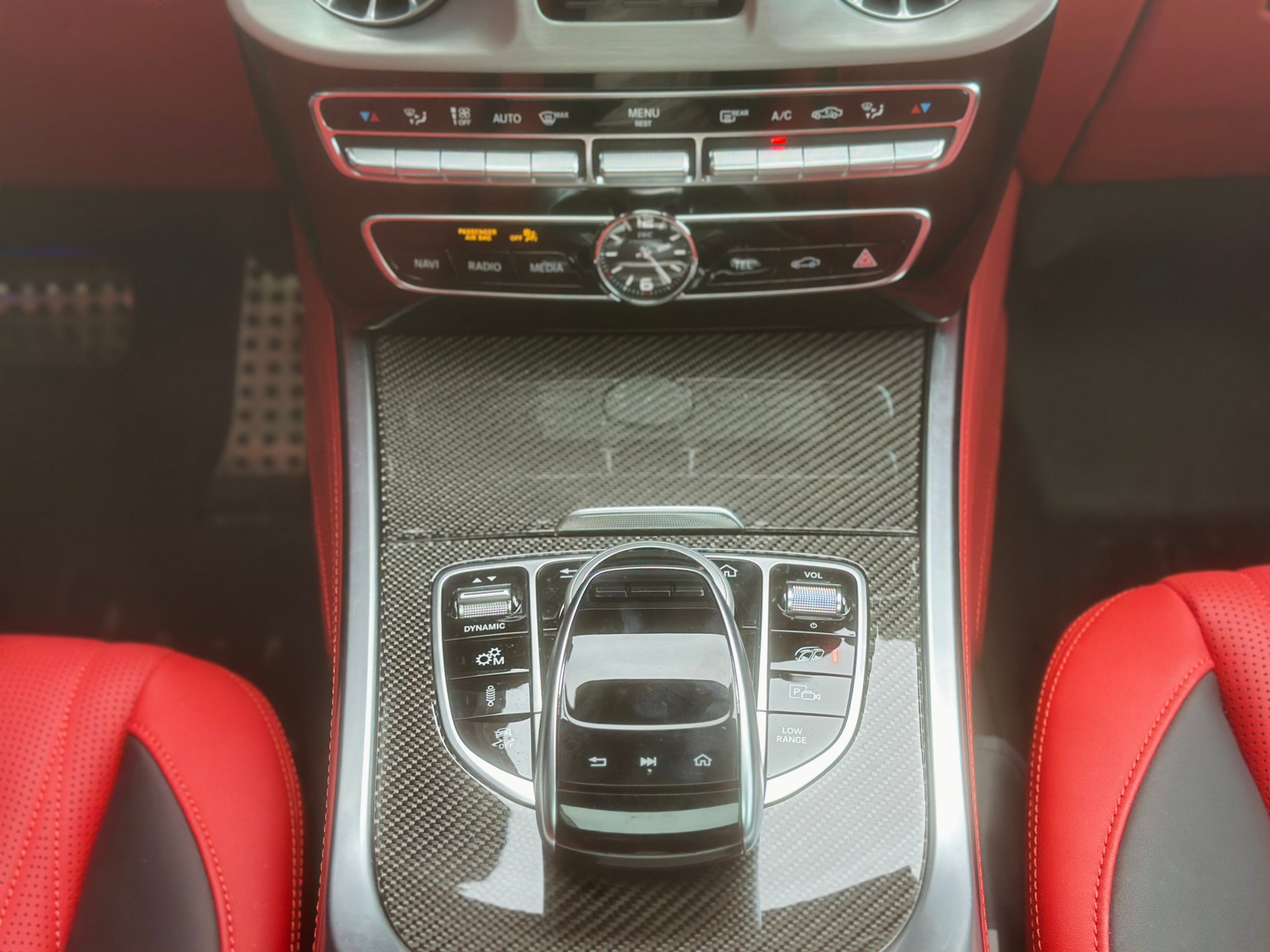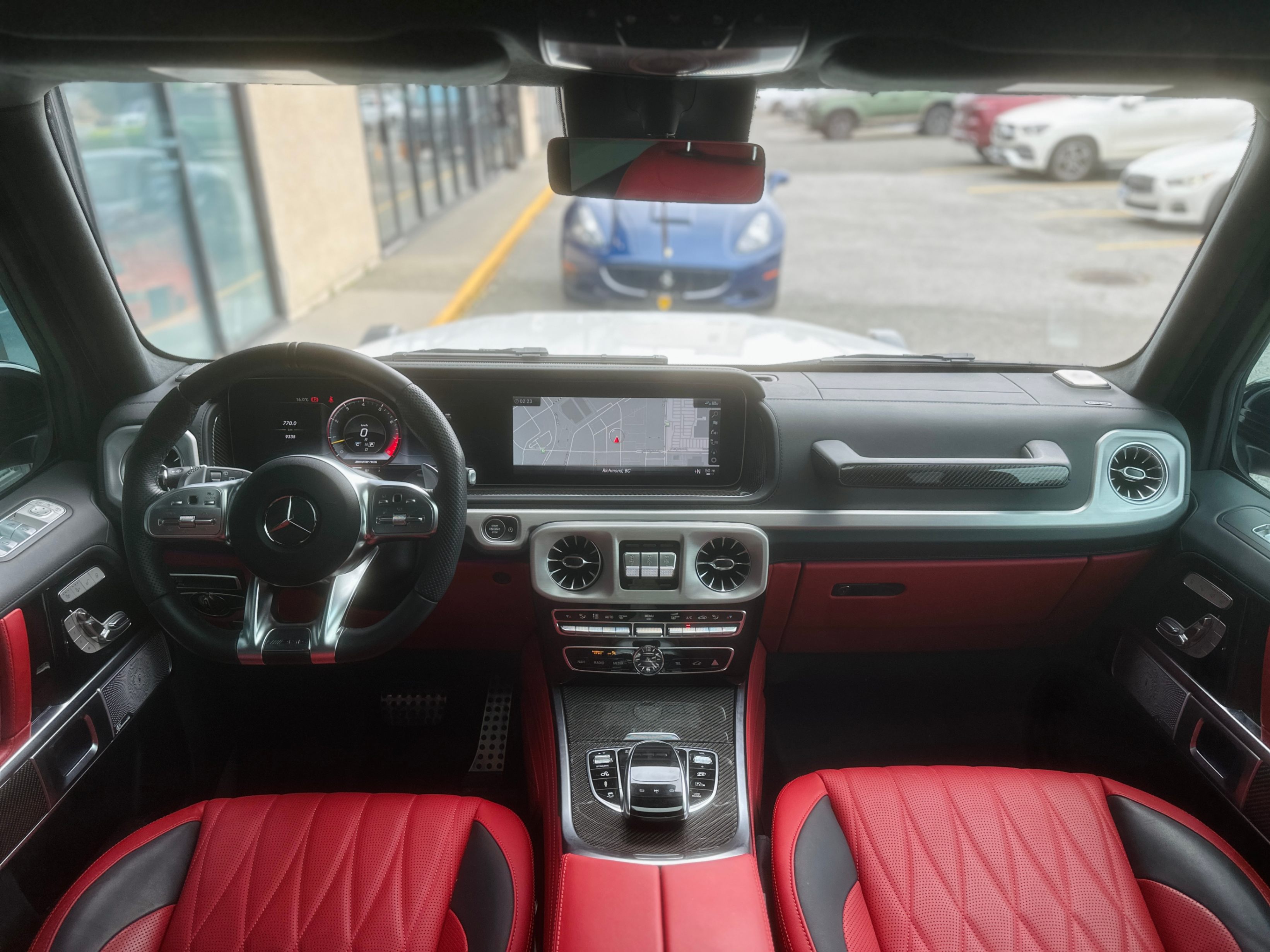 Interior Color: Black & Red two-tone full leather interior with carbon fiber trim