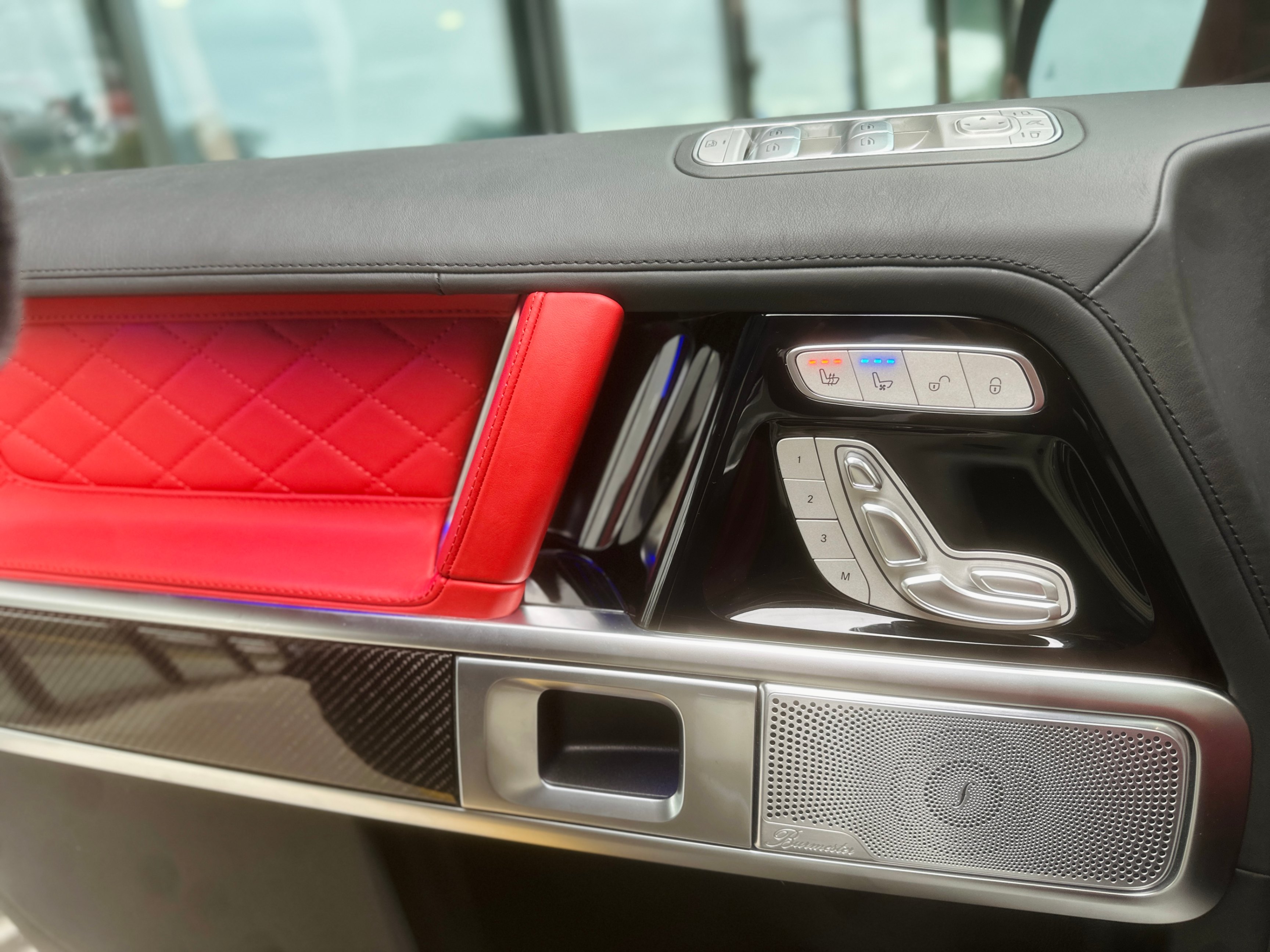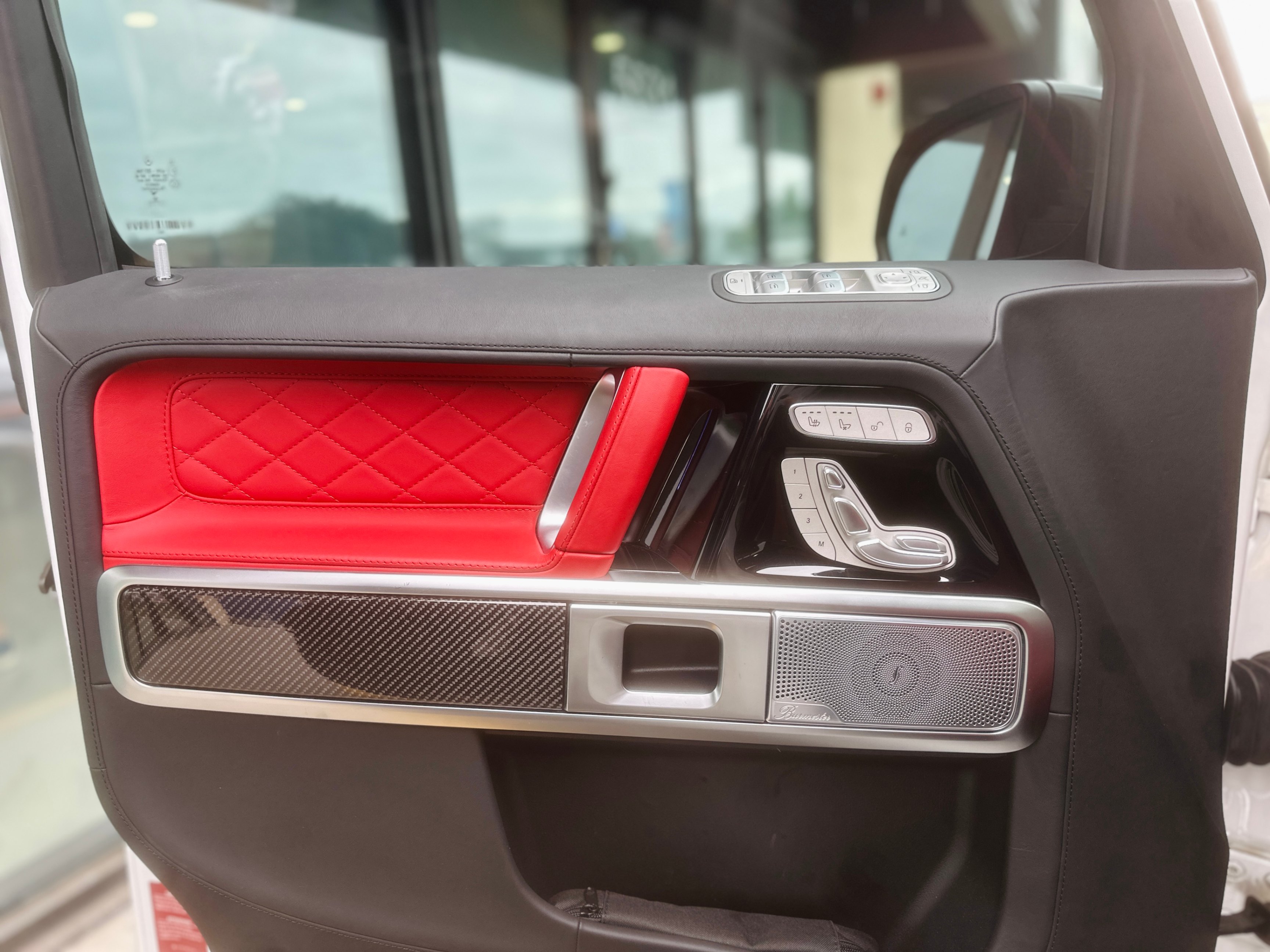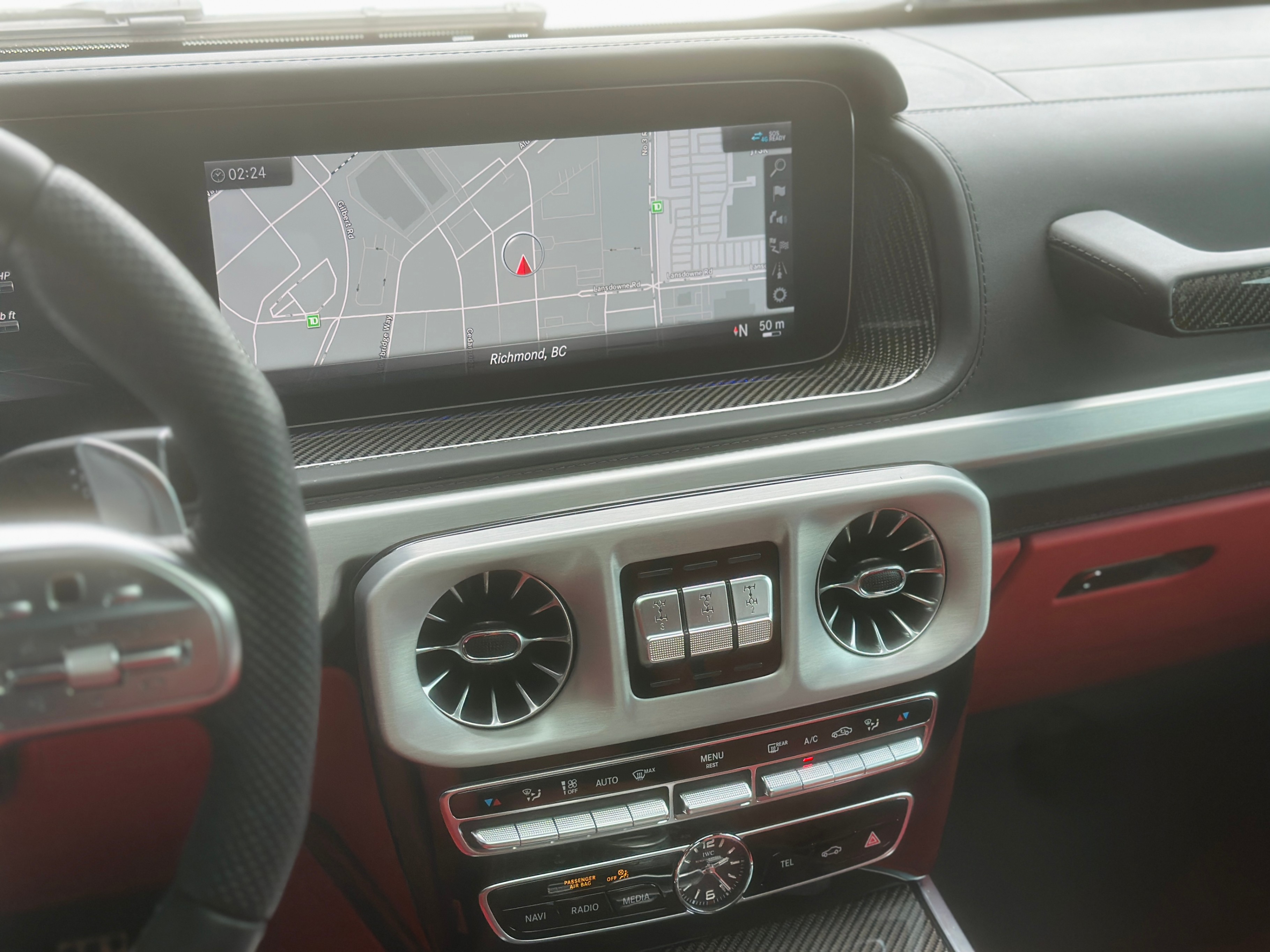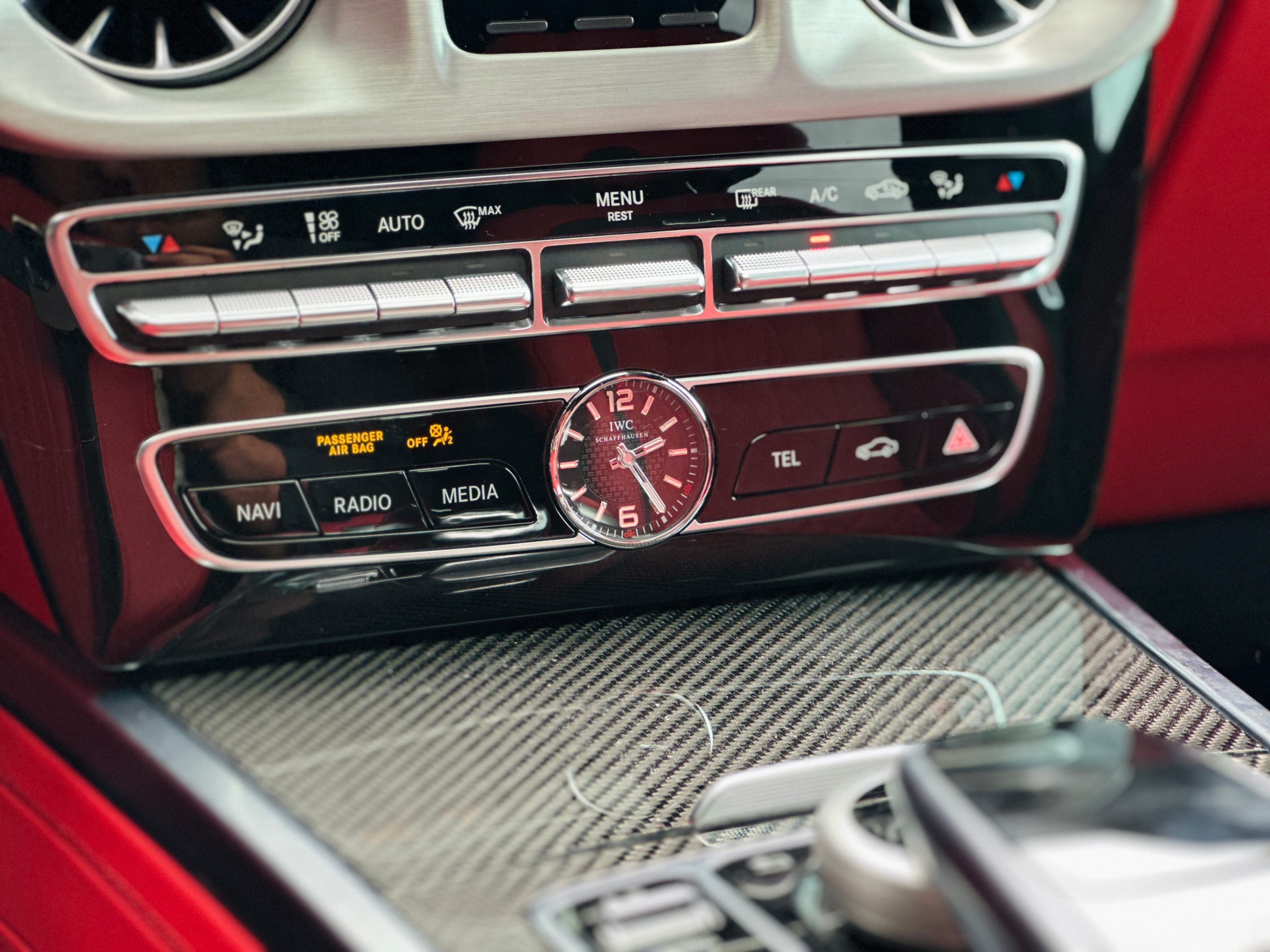 Interior Color: Black & Red two-tone full leather interior with carbon fiber trim