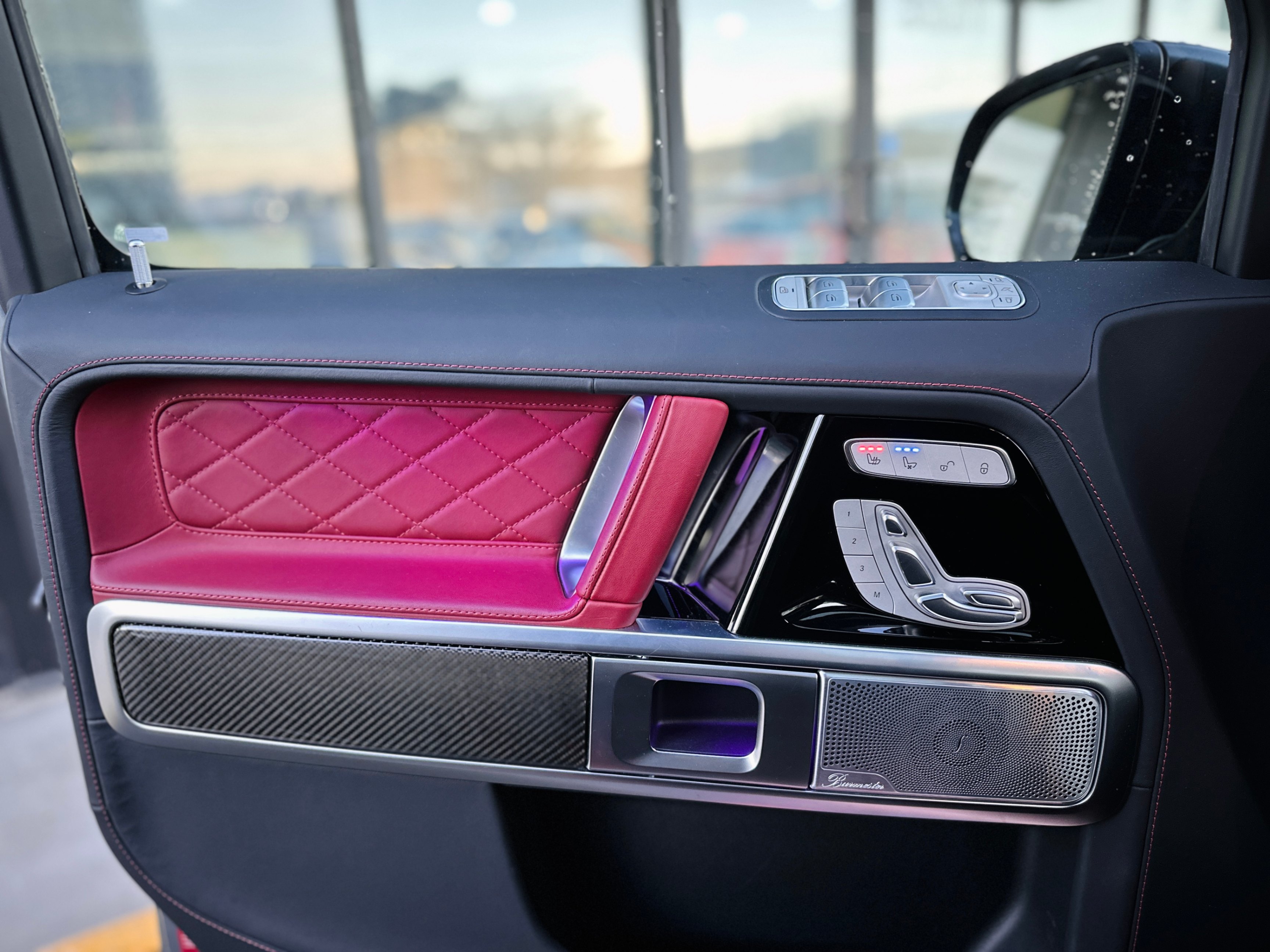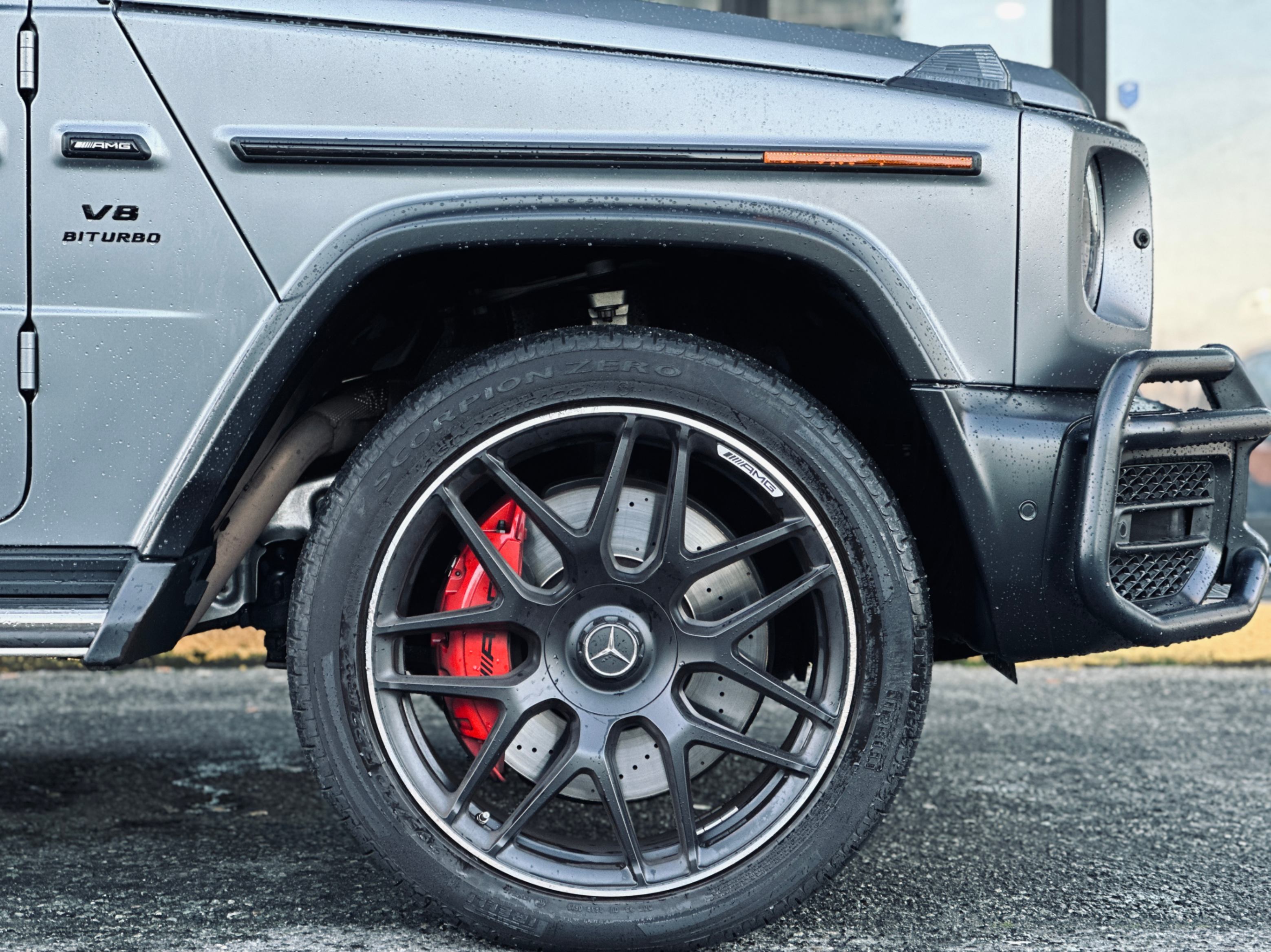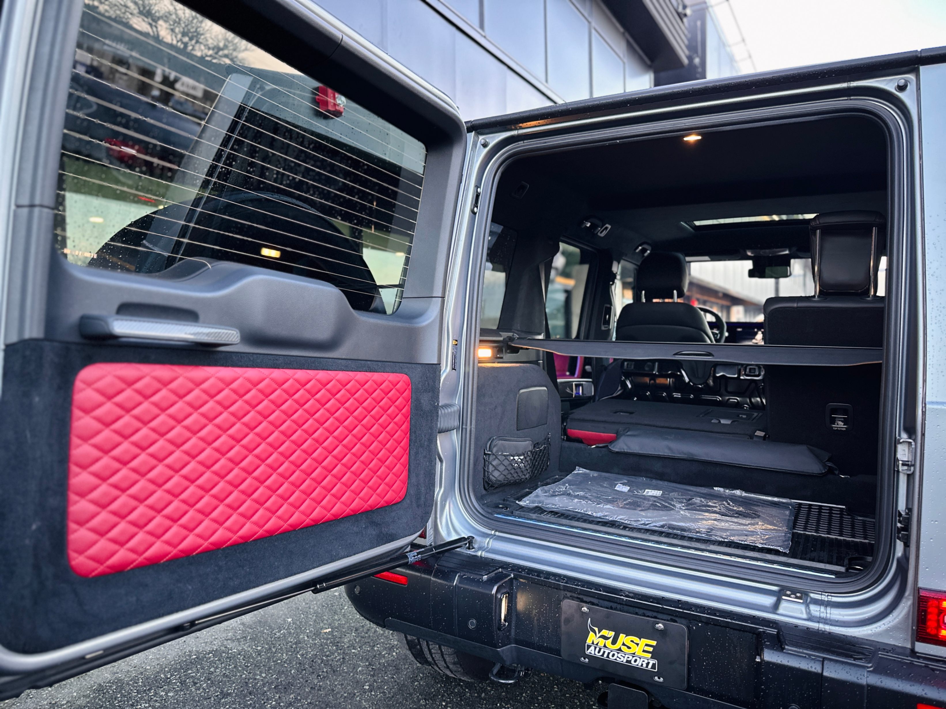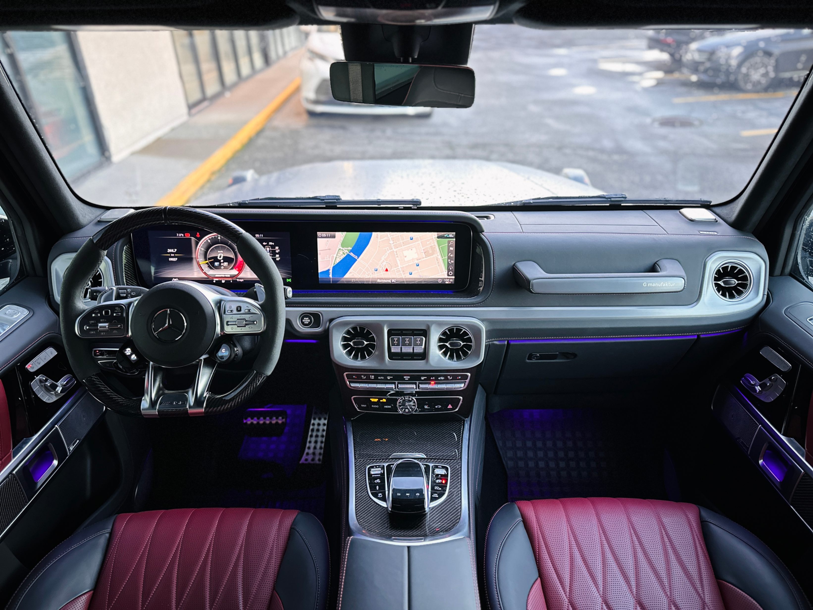 Fully loaded with G-Manufaktur special options, Magno satin grey & black two-tone paint, bull bar in satin finish, red & black two-tone full leather interior w/ diamond-like stitching, carbon fiber interior package, carbon fiber steering wheel with multifunction LED dials, night package, heated & ventilated seats w/ massage functions, Burmester premium surround audio system, 4.0L Bi-Turbo V8, 3 axle locks......Plus much more features!