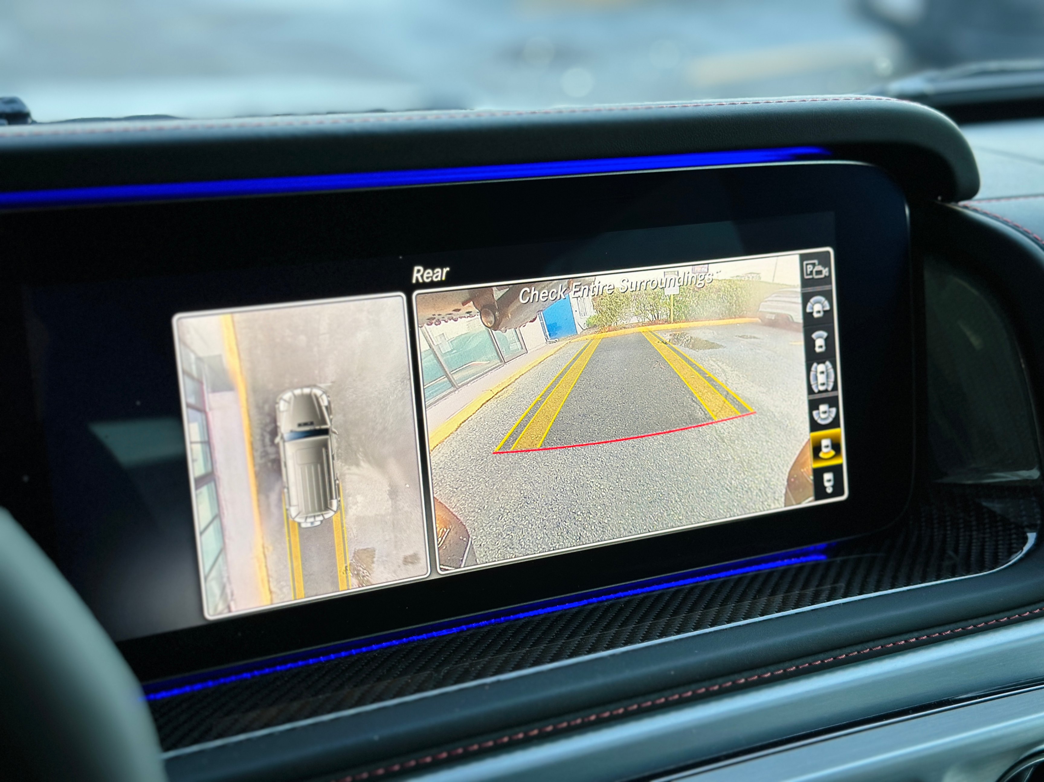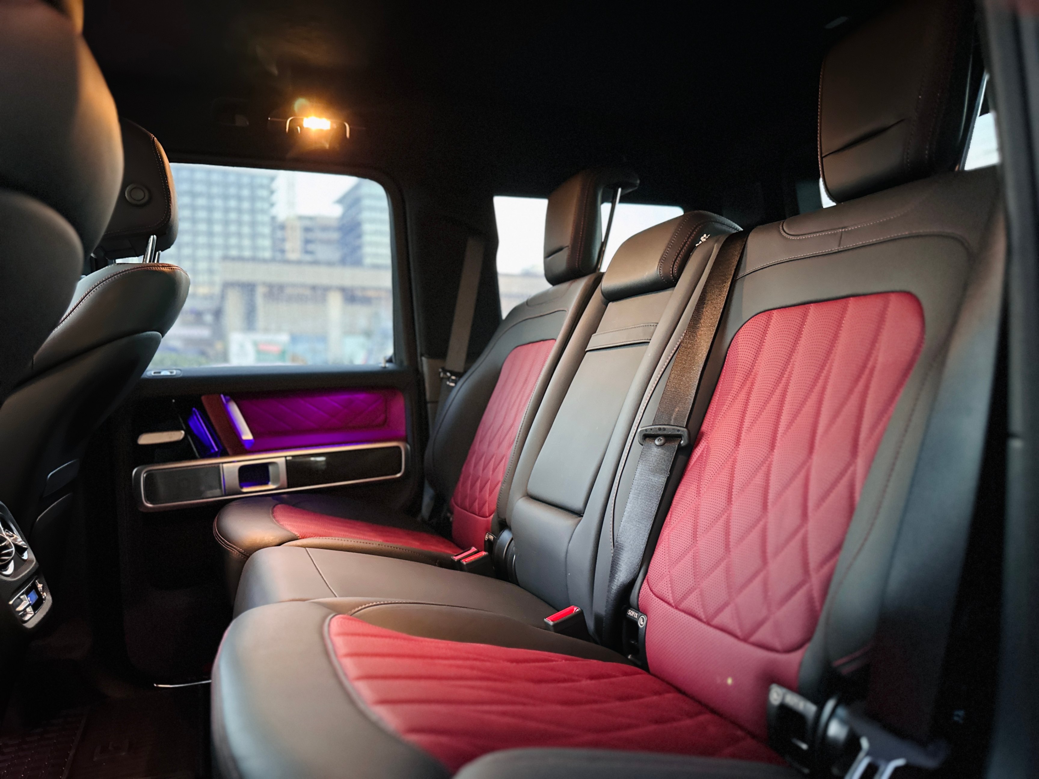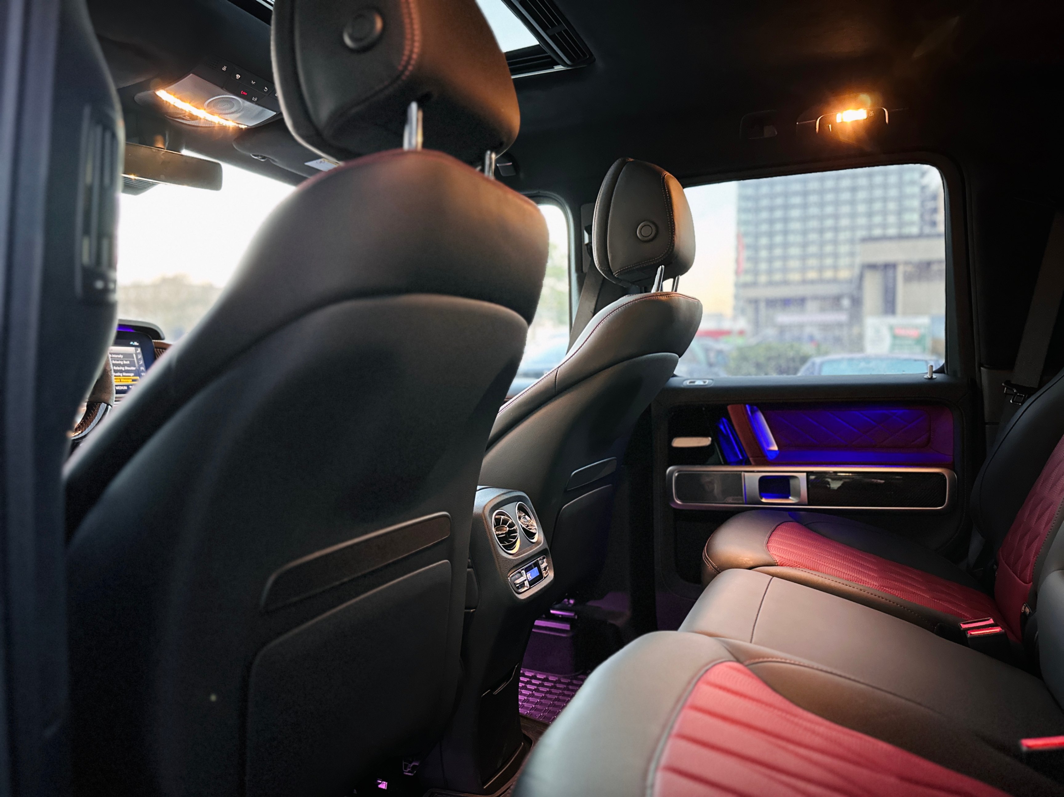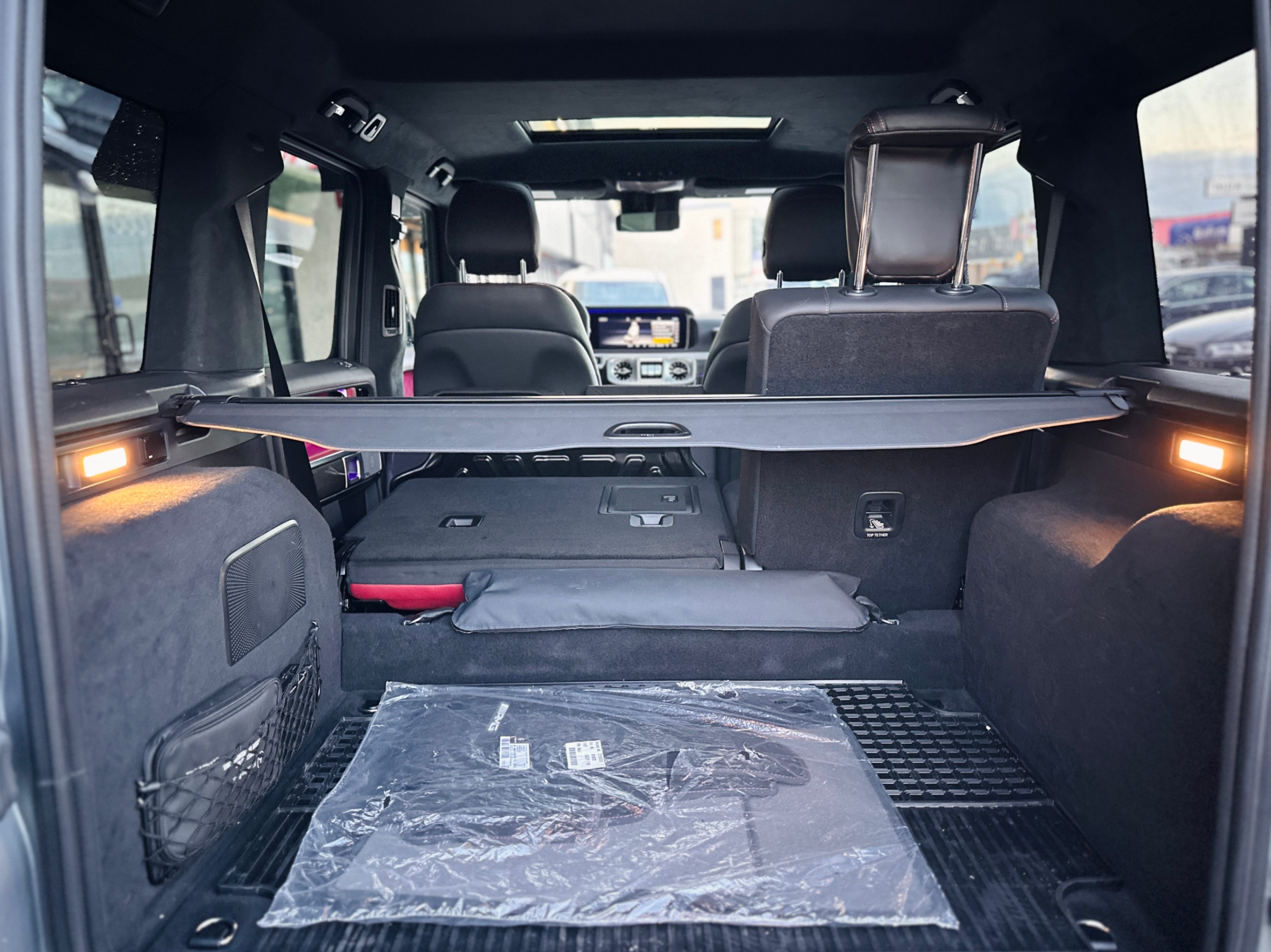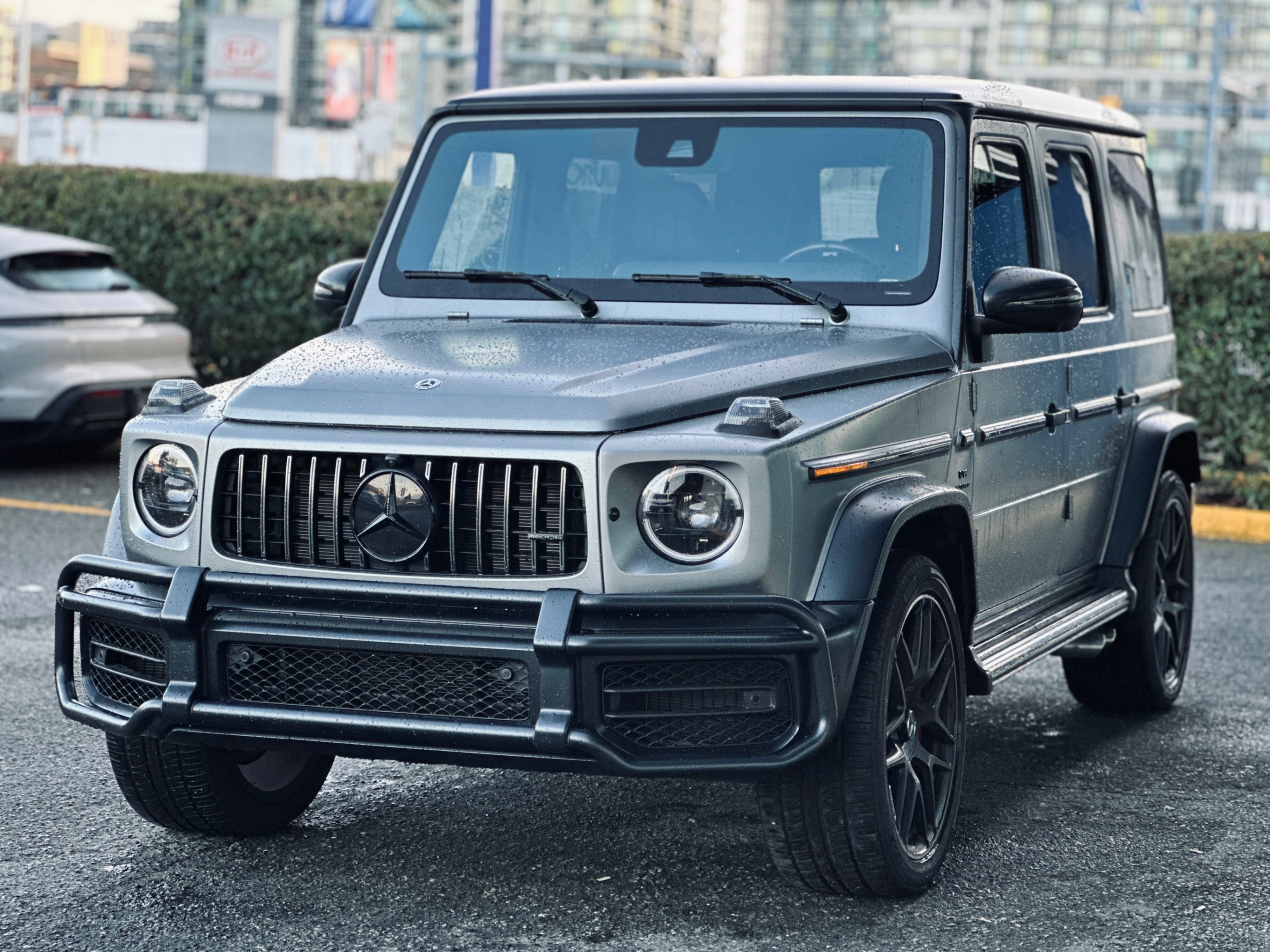 Fully loaded with G-Manufaktur special options, Magno satin grey & black two-tone paint, bull bar in satin finish, red & black two-tone full leather interior w/ diamond-like stitching, carbon fiber interior package, carbon fiber steering wheel with multifunction LED dials, night package, heated & ventilated seats w/ massage functions, Burmester premium surround audio system, 4.0L Bi-Turbo V8, 3 axle locks......Plus much more features!