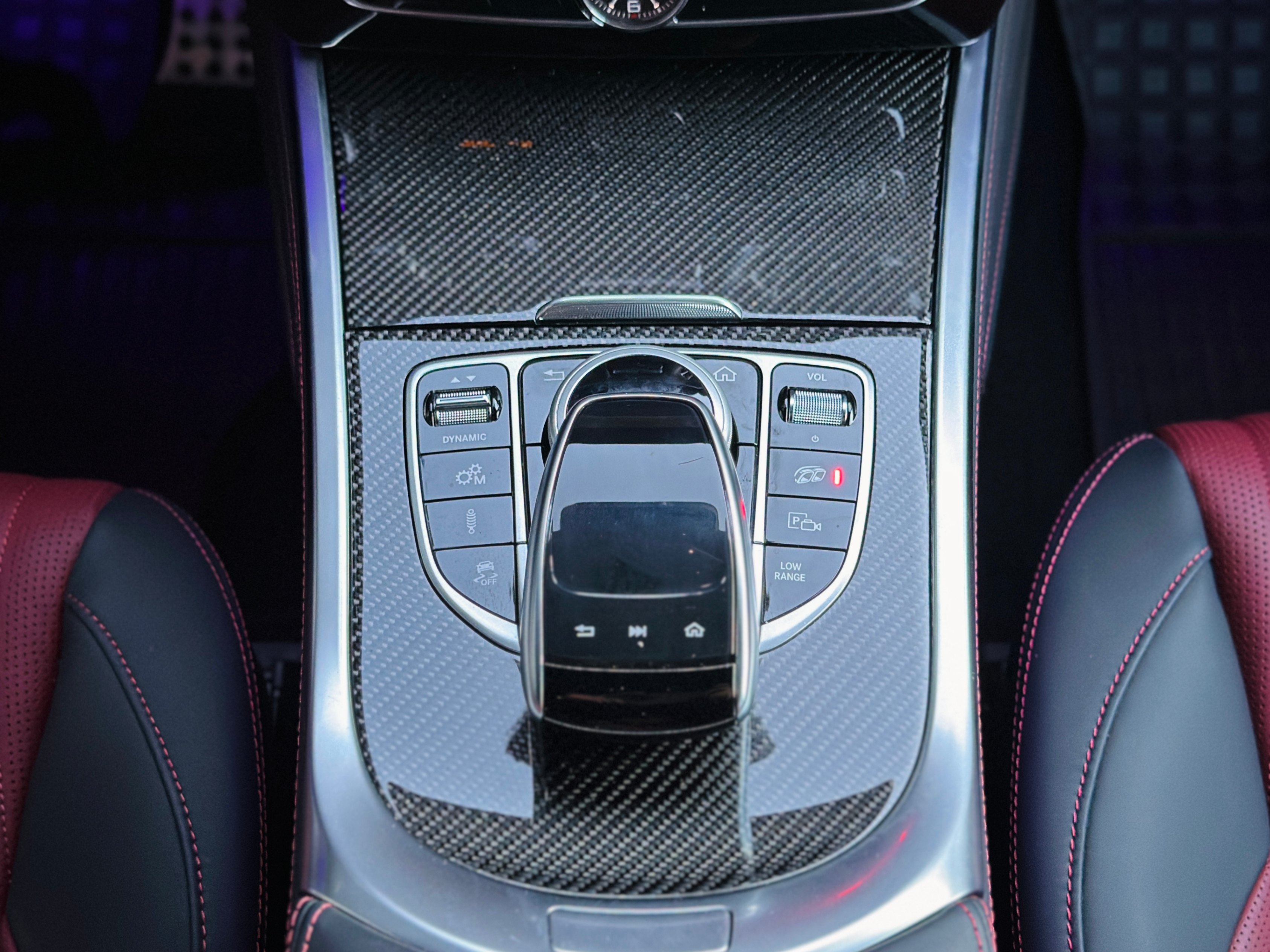 Interior Color: Red & black two-tone full leather interior w/ diamond-like stitching and carbon fiber interior package