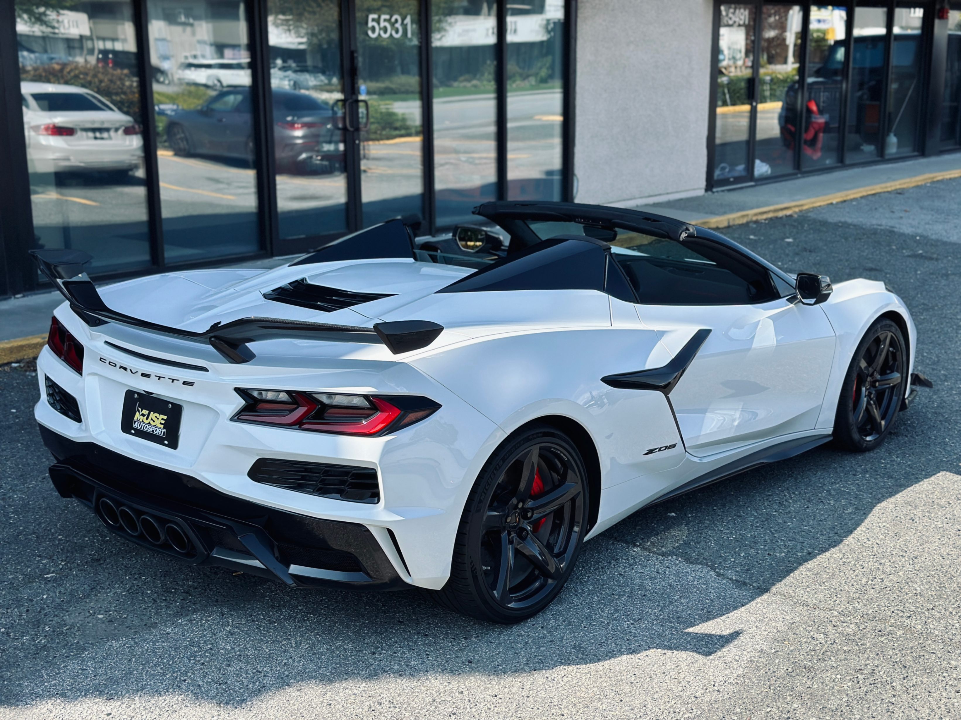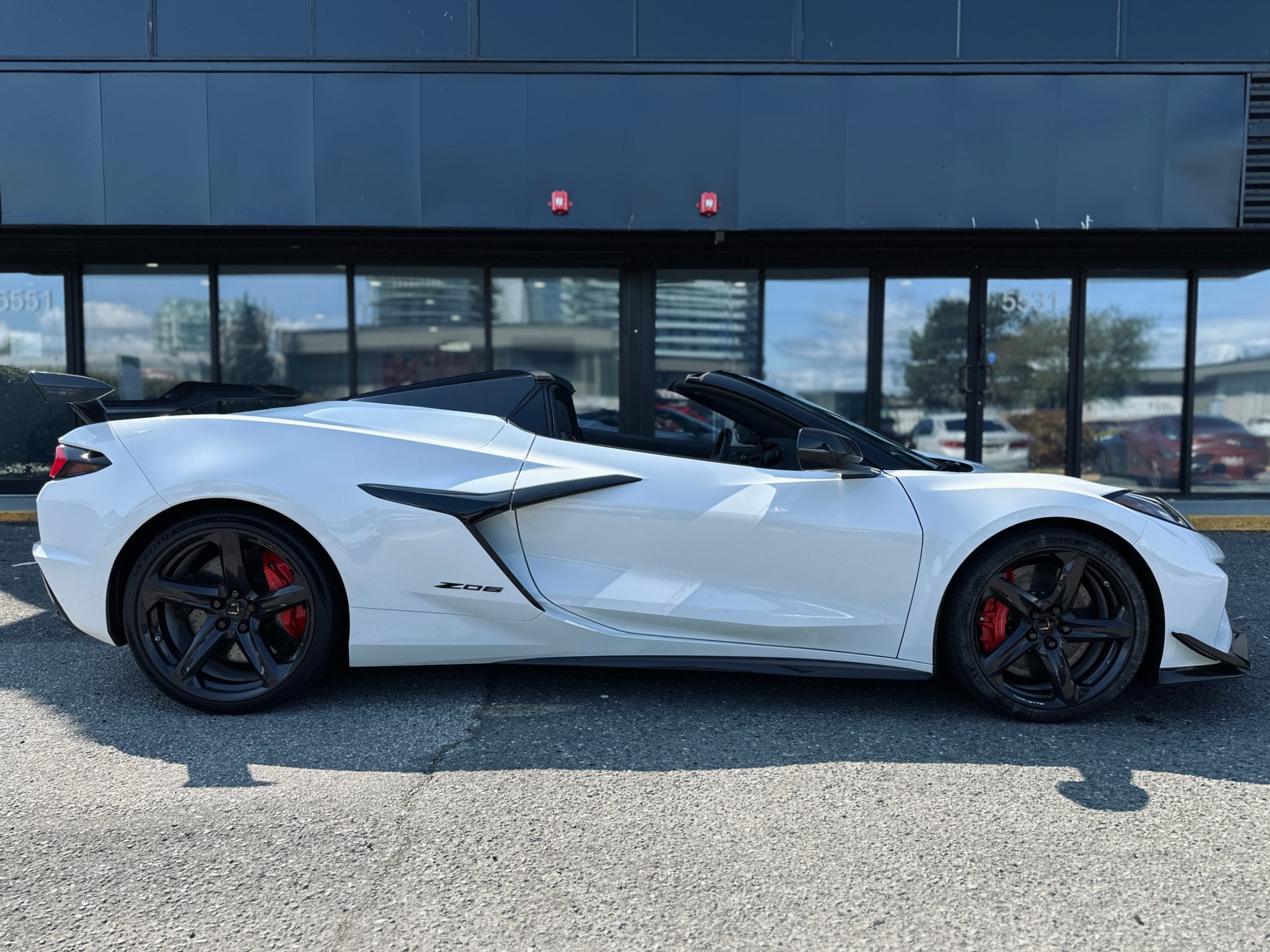 Our 2024 Chevrolet Corvette C8 Z06 Convertible is equipped with Z07 track package, carbon fiber wheels with Michelin Cup2R tires, carbon fiber aero package, power convertible hard top, and full carbon fiber interior options. Our C8 Z06 is one of the highest factory optioned cars in Canada. No accident, local car with only one owner, clean title, like-new showroom condition, one of the best naturally aspirated V8 production sports cars in the world!